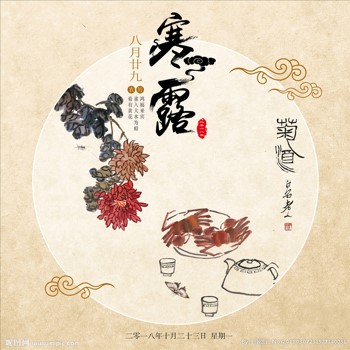 寒露与重阳节接近,此时菊花盛开,为除秋燥,某些地区有饮“菊花酒”的习俗,这一习俗与登高一起,渐渐移至重阳节。菊花酒是由菊花加糯米、酒曲酿制而成,古称“长寿酒”,其味清凉甜美,有养肝、明目、健脑、延缓衰老等功效。