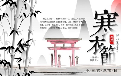 寒衣节,中国传统节日,每年农历十月初一,又称“十月朝”“祭祖节”“冥阴节”,民众称为鬼头日,是我国传统的祭祀节日,相传起源于周代。寒衣节流行于北方,不少北方人会在这一天祭扫,纪念仙逝亲人,谓之送寒衣。